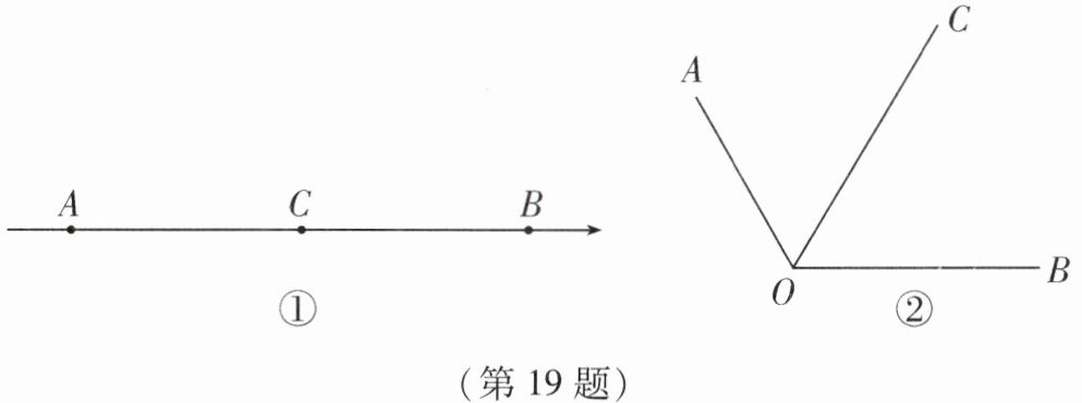 (3)我们发现角的很多运算方法和线段运算方法一样,如图②,已知$\angle AOB = 120^{\circ}$,$OC平分\angle AOB$,射线$OP从OA$出发,以每秒$1^{\circ}$的速度顺时针旋转,射线$OQ从OB$出发,以每秒$2^{\circ}$的速度逆时针旋转,射线$OP$、$OQ$同时旋转,当射线$OQ到达OA$时,射线$OP$、$OQ$同时停止旋转. 设旋转时间为$t$秒,在旋转过程中,存在某一时刻,使得$\angle POC = 2\angle QOC$,求旋转时间$t$的值.