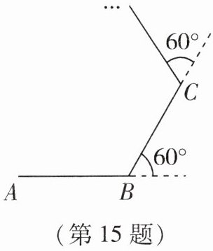 15. 如图,小东在操场的中心位置,从点A出发,每走6m向左转$60^{\circ}$.