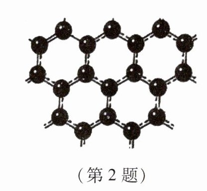 2. (跨学科·化学)石墨烯在材料学、能源、生物医学等方面具有重要的应用前景. 它的分子结构如图所示,所有多边形都是正六边形. 一个正六边形的内角和为()