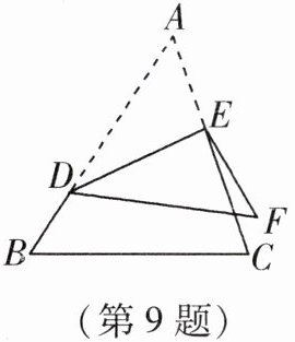 9. 如图,将 $ \triangle ABC $ 沿 $ DE $ 折叠,使点 $ A $ 落在点 $ F $ 处.