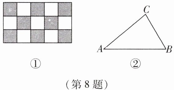 8. 如图①,用地砖铺地,要求砖与砖严丝合缝,不留空隙,把地面全部覆盖. 从数学角度看,这些工作就是用一些不重叠摆放的多边形把平面的一部分完全覆盖. 任意剪出一些形状、大小相同的三角形纸板(如图②),它们能铺满平面,依据是____.