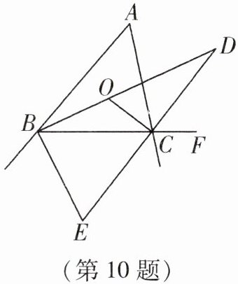 10. 在 $ \triangle ABC $ 中, $ \angle ABC $、 $ \angle ACB $ 的平分线交于点 $ O $,与 $ \angle ACB $ 相邻的外角的平分线所在直线与 $ \angle ABC $ 的平分线相交于点 $ D $,和与 $ \angle ABC $ 相邻的外角的平分线相交于点 $ E $,则下列结论一定正确的是____. (填序号)