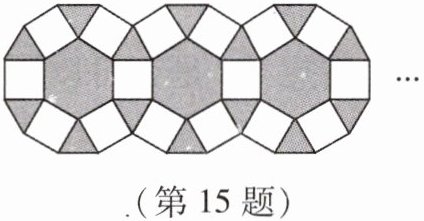 15. 公园中的一条小路使用正六边形、正方形、正三角形三种地砖按照如图方式铺设.