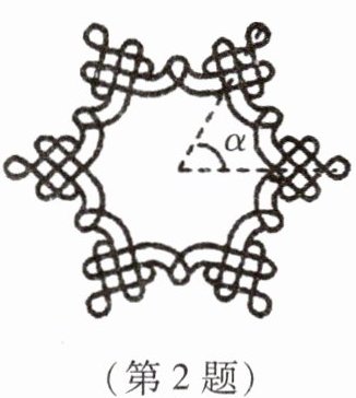2. (家国情怀)北京2022年冬奥会入场式引导牌上的图案融入了中国结和雪花两种元素. 如图,这个图案绕着它的中心旋转角α后能够与它本身重合,至少应旋转的角度是()