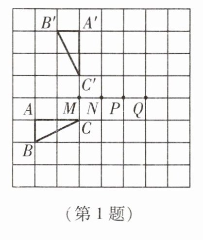 1. 如图,方格图中的每个小正方形的边长为1,将△ABC绕旋转中心旋转某个角度后得到△A'B'C',其中点A、B、C的对应点是点A'、B'、C',那么旋转中心是()