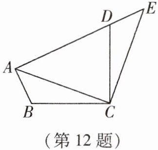 12. 如图,将△ABC绕点C顺时针旋转90°得到△EDC. 若点A、D、E在同一条直线上,且∠ACB= 20°,求∠CAE及∠B的度数.