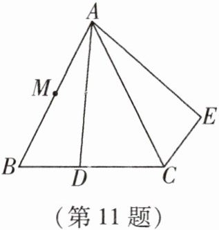 11. 如图,将△ABD经过逆时针旋转后到达△ACE的位置.