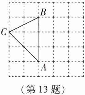 13. 如图,在由边长为1的小正方形组成的网格中,△ABC的三个顶点均在格点上. 以点A为旋转中心,将△ABC按顺时针方向旋转90°,画出旋转后的△AB'C',点B、C的对应点分别为B'、C'.