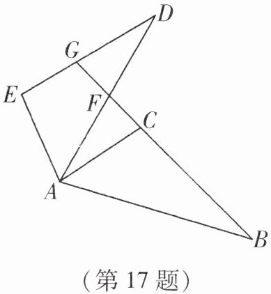 17. 如图,已知$\triangle ABC \cong \triangle ADE$,$BC的延长线交AD于点F$,交$ED于点G$,且$\angle CAD = 30^{\circ}$,$\angle B = \angle D = 25^{\circ}$,$\angle EAB = 130^{\circ}$,求$\angle DFB和\angle DGB$的度数.