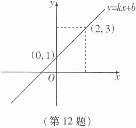 12. 在平面直角坐标系中,一次函数$y = kx + b(k \neq 0)$的图象如图所示。