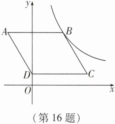16. 如图,$□ ABCD$水平放置在平面直角坐标系中,点$A$、$D的坐标分别为(-2,5)$、$(0,1)$,点$B(3,5)在函数y = \frac{k}{x}(x > 0)$的图象上。