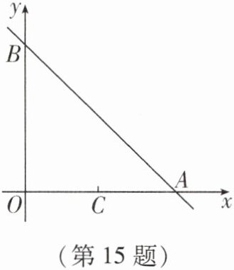 15. 如图,在平面直角坐标系中,直线$y = -x + 2与x轴和y轴分别交于点A和点B$,另一直线$y = kx + b(k \neq 0)经过点C(1,0)$,且把$\triangle AOB$分成两部分。