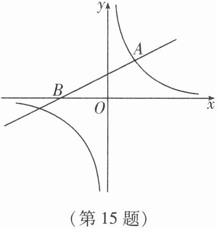 15. 如图,在平面直角坐标系中,直线 $ y= \frac{1}{2}x + 2 $ 与双曲线 $ y= \frac{k}{x} $ 交于点 $ A(m,3) $,与 $ x $ 轴交于点 $ B $.