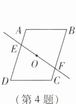 4. 如图,直线 $EF$ 经过 $□ ABCD$ 的对角线交点 $O$,若平行四边形 $ABCD$ 的面积为 $36 \text{ cm}^2$,则四边形 $EDCF$ 的面积为 ()