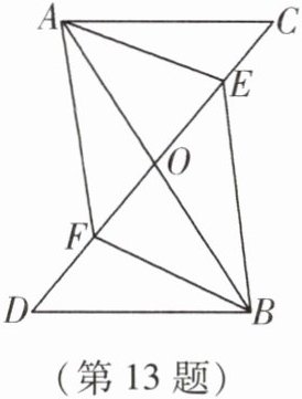 13. 如图,$AB$、$CD$ 相交于点 $O$,$AC // DB$,$AO = BO$,$E$、$F$ 分别是 $OC$、$OD$ 的中点。