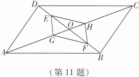 11. 如图,$□ ABCD$的对角线AC、BD交于点O,点E、F在BD上,点G、H在AC上,$DF = BE$,$AH = CG$. 求证:$GF// EH$.