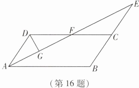 16. 如图,在平行四边形ABCD中,$∠BAD$的平分线与BC的延长线交于点E,与DC交于点F.