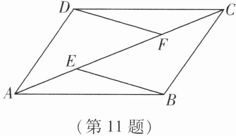 11. 如图,四边形$ABCD$是平行四边形,点$E$、$F在对角线AC$上,且$AE = CF$,连结$BE$、$DF$. 求证:$BE// DF$.