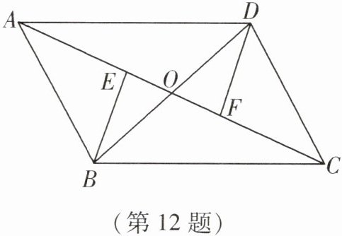 12. 如图,$□ ABCD的对角线AC和BD交于点O$,$E$、$F分别是OA$、$OC上的点且AE = CF$. 求证:$BE = DF$.