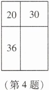 4. 如图,一块矩形的土地被分成4块小矩形,其中3块的面积分别为20,30,36,则第4块土地的面积为()