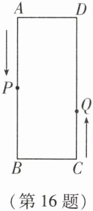 16. 如图,在矩形ABCD中,AB= 16cm,AD= 6cm. 动点P、Q分别从A、C两点同时出发,点P以每秒3cm的速度向终点B运动,点Q以每秒2cm的速度向终点D运动. 设点Q的运动时间为t秒.