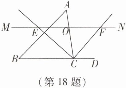 18. 如图,在△ABC中,O是边AC上一个动点,过点O作直线MN//BC. 设MN交∠ACB的平分线于点E,交∠ACB的外角平分线于点F.