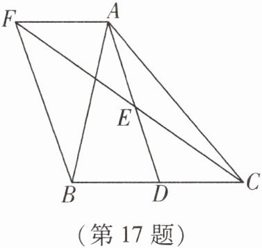 17. 如图,在△ABC中,D是BC边上的中点,E是AD边上的中点,过A点作BC的平行线交CE的延长线于点F,连结BF.