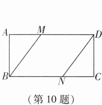 10. 如图,在矩形 $ABCD$ 中,$AD = 2AB$,点 $M$、$N$ 分别在边 $AD$、$BC$ 上,连结 $BM$、$DN$. 若四边形 $MBND$ 是菱形,则 $\frac{AM}{MD} = $____.