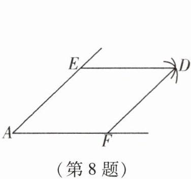 8. 如图,$E$、$F$ 分别是锐角 $\angle A$ 两边上的点,$AE = AF$;分别以点 $E$、$F$ 为圆心,以 $AE$ 的长为半径画弧,两弧相交于点 $D$,连结 $DE$、$DF$. 四边形 $AEDF$ 的形状是____,连结 $EF$,若 $AE = 8$,$\angle A = 60^{\circ}$,则线段 $EF$ 的长为____.