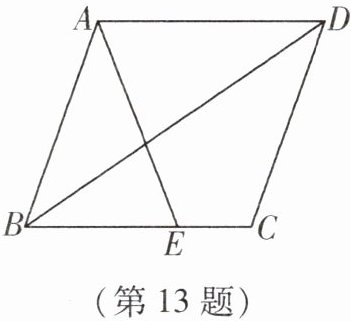 13. 如图,在 $□ ABCD$ 中,$E$ 为 $BC$ 边上的一点. 连结 $AE$、$BD$,且 $AE = AB$.