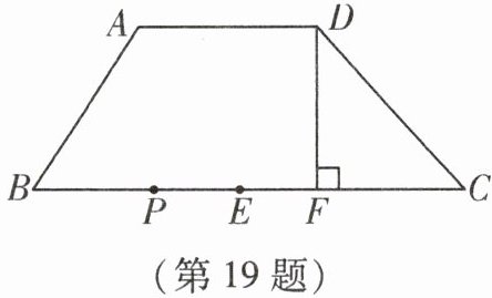 19. 如图,在四边形 $ABCD$ 中,$AD// BC$,$E$ 是 $BC$ 的中点,$DF\perp BC$,垂足为 $F$,$AD = 5$,$BC = 12$,$DF = 4$,$\angle C = 45^{\circ}$,$P$ 是 $BC$ 边上的一个动点,设 $PB$ 的长为 $x$.