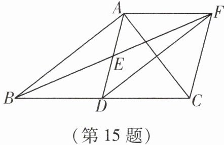 15. 如图,在△ABC中,点D在BC上,AD= BD,E为AD的中点,过点A作AF//BC交BE的延长线于点F,连结CF.
