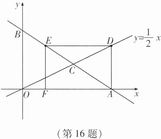 16. 如图,在平面直角坐标系中,点A的坐标为(6,0),B是y轴正半轴上的一动点.矩形ADEF的顶点D、E分别在直线y= 1/2x和直线AB上,顶点F在x轴上.