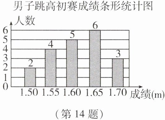14. 在一次中学生田径运动会上,根据参加男子跳高初赛的运动员的成绩(单位:m),绘制出如下的条形统计图,请根据相关信息,解答下列问题:
