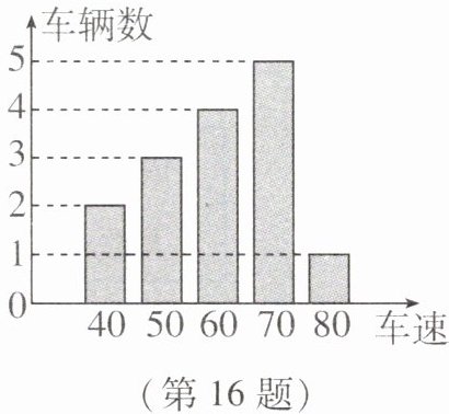 16. 如图是交警在一个路口统计的某个时段来往车辆的车速(单位:km/h)情况条形统计图,根据图中信息解答下列问题: