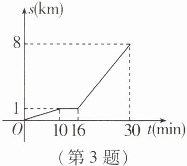 3. 小亮从家步行到公交车站台,等公交车去学校. 图中的折线表示小亮的行程$s(km)与所花时间t(min)$之间的函数关系. 下列说法错误的是()