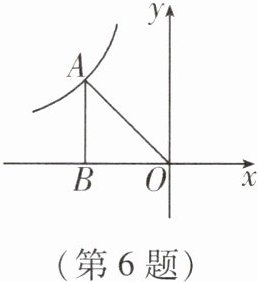 6. 如图,在平面直角坐标系中,$A为反比例函数y = \frac{k}{x}$在第二象限的图象上的一点,$AB \perp x轴于点B$. 若$\triangle ABO的面积为6$,则$k$的值为()