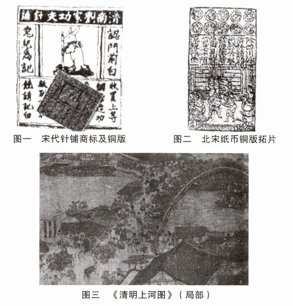 (1) 图一“铜版”反映的是中国古代四大发明中的哪项发明? 图二“交子”是世界上最早的什么货币? 《清明上河图》是一幅全景式的宋朝社会风俗画卷,请说出宋代城市中商业区被称为什么。