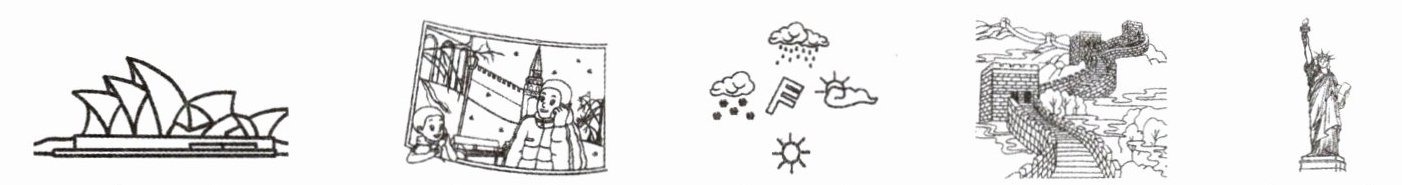 Ⅰ. 看图,选择与图片相对应的句子,并将其字母序号填在图片下面的括号中。