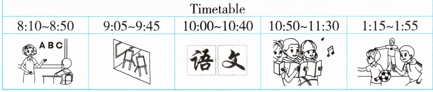 1.English 2.art 3.music 4.PE 5.Chinese 6.four