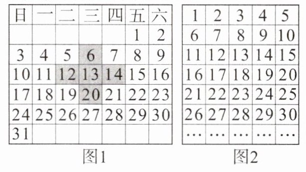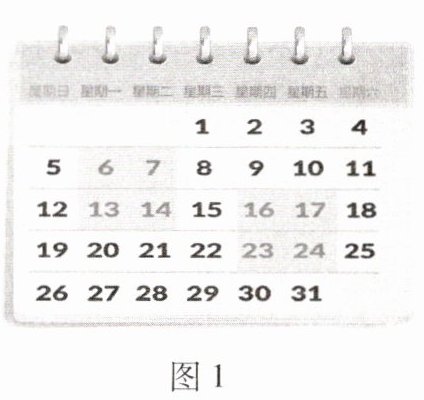 2. (新教材P119数学活动1月历中的奥秘(续))如图1是某月的月历.