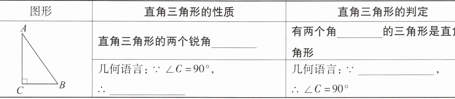 ||直角三角形的两个锐角____|有两个角____的三角形是直角三角形|