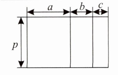 (1)大长方形的面积可以表示为$p ( a + b + c )$,还可以表示为____,由此可验证的因式分解的式子为____;
