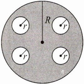 17. (新教材P136T6)如图,在半径为R的圆形钢板上,挖去半径为r的四个小圆,计算当$R = 5.6cm$,$r = 1.2cm$时剩余部分的面积. (π取3.14)