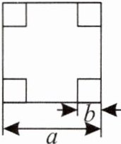 13. 如图,在一块边长为 $ a $ cm 的正方形纸板四角各剪去一个边长为 $ b $ cm $ (b < \frac{a}{2}) $ 的正方形,利用因式分解计算当 $ a = 22.4 $,$ b = 3.8 $ 时,剩余部分的面积。
