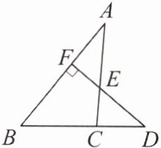 11. 如图,已知$D为\triangle ABC边BC$延长线上的一点,$DF\perp AB于点F$,交$AC于点E$,$\angle A= 35^{\circ}$,$\angle D= 40^{\circ}$,求$\angle ACD$的度数。