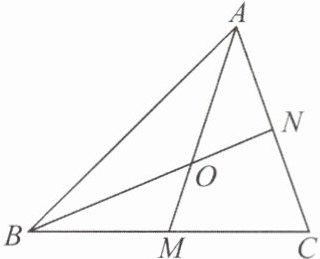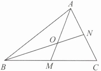 5. 如图,△ABC的两条中线AM,BN相交于点O,△BOM的面积为3,则△AON的面积为______.