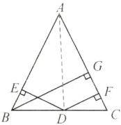 3. 如图,在△ABC中,AB = AC,DE⊥AB,DF⊥AC,BG⊥AC. 求证:DE + DF = BG.