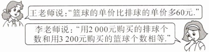 李老师说:“用$2000元购买的排球个数和用3200$元购买的篮球个数相等.”