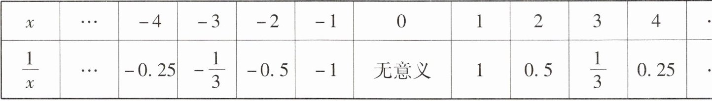 材料 1:为了研究分式$\frac {1}{x}$与分母x的关系,小明制作了表格,并得到如下数据: